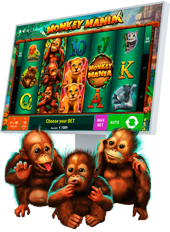 Monkey Mania has a max win factor of 1000x and takes players on an adventure beneath the canopy where cute animals hang out. 10 Free Games are triggered when three Monkey Mania scatters land on the reels. Wilds appear stacked and more often during Free Games. Multiple Wilds on one line count as the Lion Cub top combination if this is the highest win on this line.