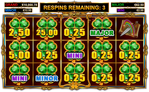 Fill up the grid with clovers in the respins feature to win the grand jackpot. Its value starts at $10,000 or €10,000 for the lowest seven bet levels and $50,000 or €50,000 for the five highest ones.