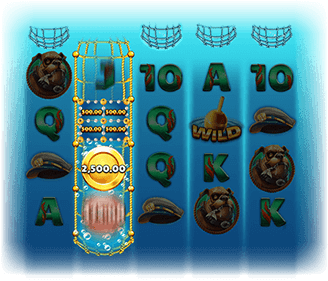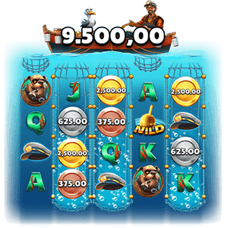 Glittering cash value coins and a boat full of respins await you in this highly rewarding ocean adventure. Nets drop randomly to collect values from coin symbols and may start two exciting respin features. One respins individual reels, while the other is played on a special grid with a chance to land huge trophy prizes.