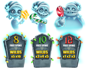 In the free games phase, there is a special meter with three slots. Each upgrade of a ghoul into wild/wild multiplier fills the meter by one skull. A full meter upgrades the lowest-paying present box into a high-paying ghoul. When no more upgrades are possible, filling the meter awards additional free games.