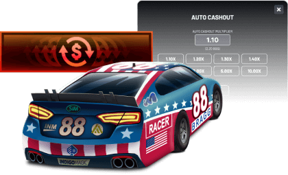 The Auto cashout option automatically collects your win when the car reaches your set bet multiplier.