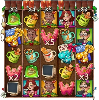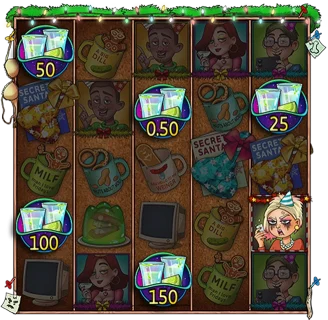 Three or more Secret Santa card scatters start the draw of the bonus feature with two options: a free games feature and a cash respins feature.