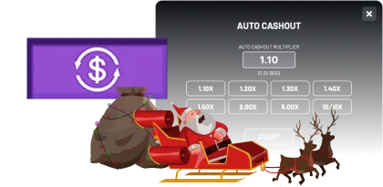 Place your bet on the falling sack of presents and optionally set automatic betting and cashout features. The autoplay option places your bets automatically, so you don’t have to, while the auto cashout option allows you to never miss a cashout after a defined threshold.