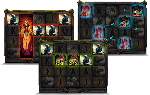 Blue wicked wilds add extra wilds to spin results, green ones have random multipliers of up to 10x, and red wilds expand across the entire reel. If a red expanding wild and a green multiplier wild land on the same reel, they combine to create an expanded multiplier wild.