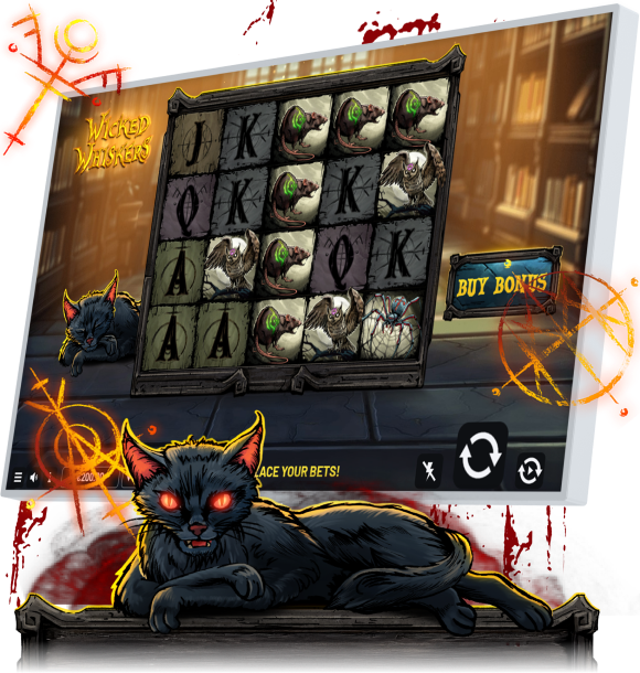 A normal game can quickly turn paranormal when the black cat awakens and turns wilds into wicked wilds. They have extra effects and carry multipliers, add additional wilds, and fully expand on the reel. Free spins start with the cat awakened and cause magical mayhem across the grid. Buy the bonus to instantly materialize the free spins feature and seize wondrously wicked wins!