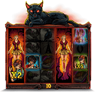 The sleeping black cat may randomly awaken and cause all wilds to land as wicked wilds with additional functionalities.